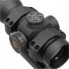 W celowniku zastosowano klasyczną czerwoną kropkę o wielkości 1 MOA, która zapewnia szerokie pole widzenia (nie przesłania celu), szybkość przenoszenia oraz precyzję strzału. Zmiany położenia kropki dokonujemy za pomocą 2 moletowanych bębnów. Zakres regulacji wynosi 80 MOA w pionie i poziomie (pełny obrót 15 MOA).