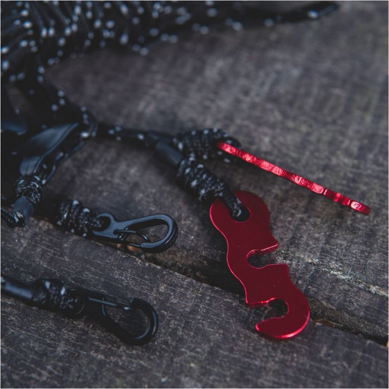 System szybkiego rozwieszania tarpa TigerWood Reflective Silk Long umożliwią Ci pozbawione użycia jakichkolwiek węzłów rozpięcie płachty biwakowej pomiędzy drzewami. Oparty na niezwykle wytrzymałych oraz niepodatnych na wpływ wilgoci linkach system doskonale sprawdzi się w trudnych warunkach atmosferycznych, gwarantując niezawodność, gdziekolwiek się nie znajdziemy. Dzięki zastosowaniu przesuwnych klamer TigerWood Silk Long zagwarantuje nam optymalne napięcie tarpa, natomiast 7 metrów linki zagwarantuje możliwość rozpięcia nawet pomiędzy odległymi drzewami.