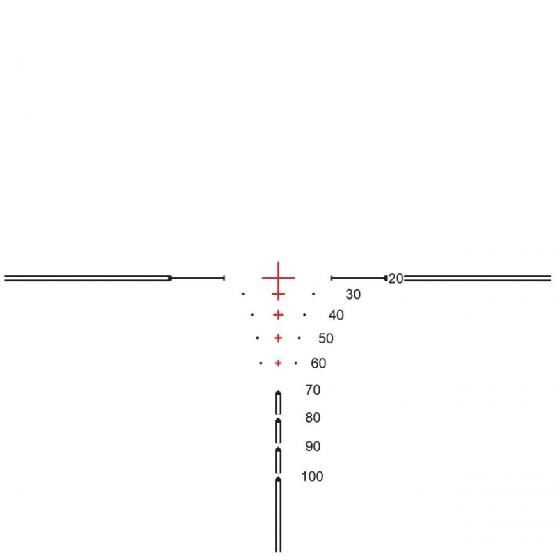 Luneta ma podświetlaną na czerwono siatkę celowniczą XB30 Pro SR w drugim planie, z nastawami do precyzyjnego na dystansie od 18 do 91 m (zero na 18 m) oraz stałą paralaksą ustawioną na 46 m. Siatka składa się z pogrubionych ramion bocznych z funkcją analogowego dalmierza, 4 podświetlanych na czerwono krzyży oraz pionowych znaczników do strzelania na większym dystansie. Na okularze znajduje się pierścień do regulacji dioptrii oraz gumowane pokrętło pełniące 2 funkcję: zmiany powiększenia, oraz definiowania prędkości bełtów wystrzeliwanych z naszej kuszy. Aby precyzyjnie zgrać siatkę celowniczą z kuszą, wystarczy ustawić pierścień powiększenia/ FPS na wartości odpowiadającej parametrom naszych strzałów. Po wyzerowaniu krzyża na 20 jardów (18 m) i ustawieniu prędkości początkowej FPS, wskaźniki poniżej środka krzyża będą precyzyjnie dopasowane do trajektorii opadu bełtów. Siatka celownicza XB30 SR może być także wykorzystywana do szacowania dystansu na podstawie wielkości celu. Dzięki nim można precyzyjnie dopasować wartość powiększenia do FPS kuszy. Bezstopniowa regulacja Rheostat podświetlania siatki ułatwia dostosowanie jasności krzyża do panujących warunków oświetleniowych.