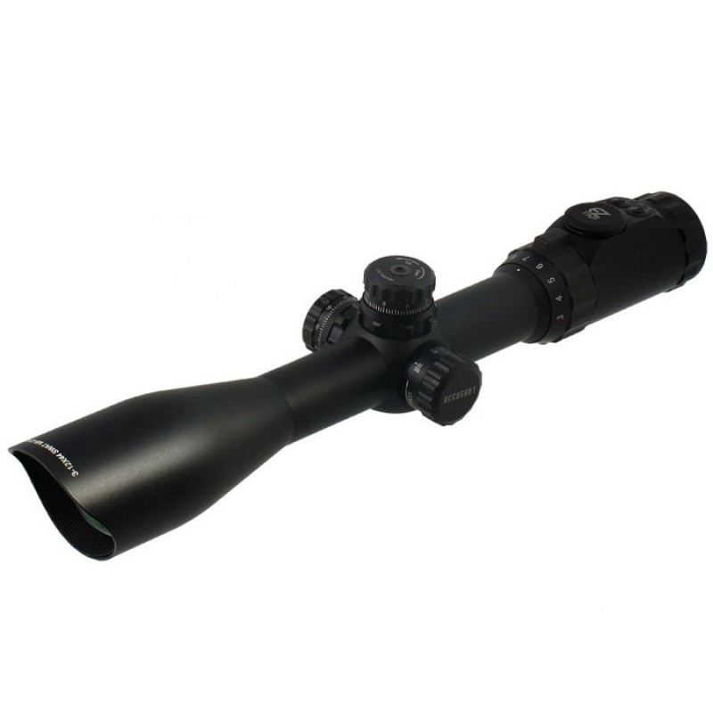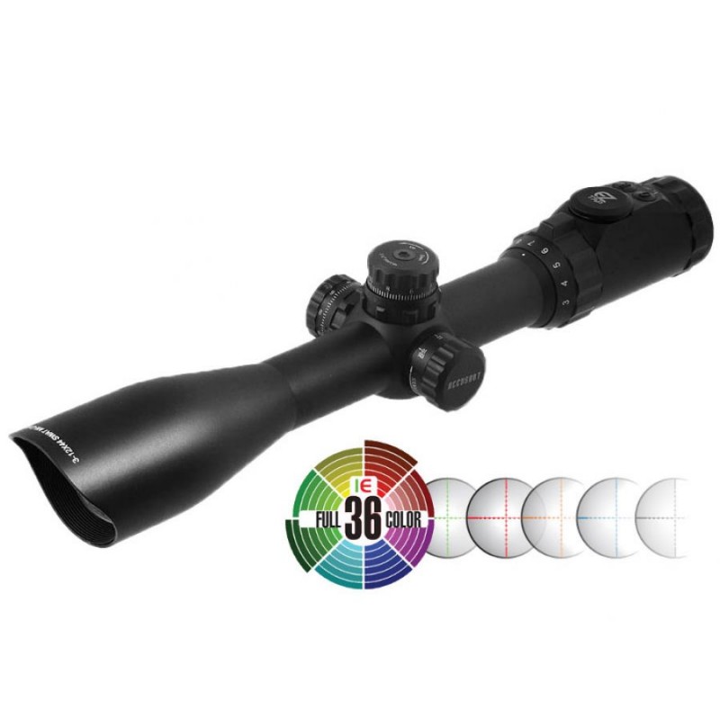 Leapers UTG 3-12X44 AO to luneta celownicza przeznaczona do strzelectwa sportowego. Wyposażona została w zmienne powiększenie (zoom 3x-12x) oraz wbudowany sunshader. Posiada regulację krzyża w pionie i w poziomie oraz dodatkowo regulację paralaksy. Przesunięcie przy jednym przeskoku pokrętła regulacji krzyża wynosi 1/4”/100 yardów. Poza tym, luneta została wyposażona w podświetlany krzyż MilDot o 7-stopniowej skali regulacji natężenia światła z wyborem 36 wariantów kolorystycznych.
