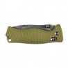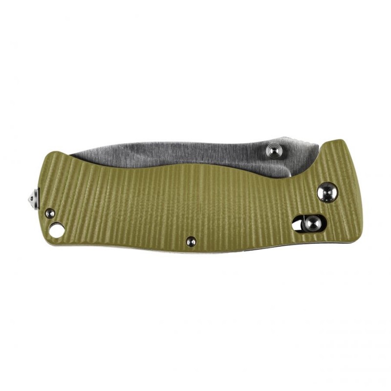 Profilowana i ergonomiczna rękojeść zapewnia pewny chwyt w każdych warunkach. Rękojeść to solidne połączenie stalowych przekładek z mocno teksturowanymi okładzinami wykonanymi z materiału o nazwie G10 w kolorze oliwkowym. Nóż posiada konstrukcję otwartą, co umożliwia utrzymanie mechnizmów w czystości. Do rękojeści przykręcono stalowy klips, który pozwala na bezpieczne i dyskretne przenoszenie noża. Na końcu rękojeści znajduję sie otwór do przewleczenia linki/paracordu.
