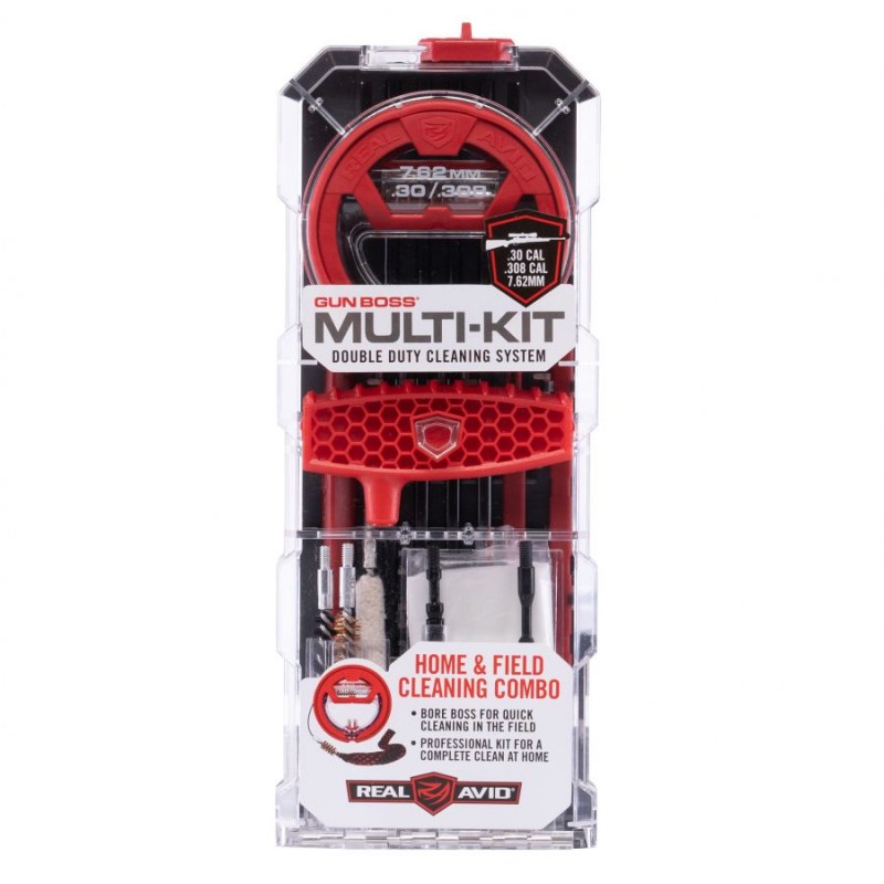 Zestaw do czyszczenia broni Real Avid Gun Boss Multi-Kit to kompleksowy przegląd narzędzi pozwalających na pozbycie się zanieczyszczeń nawet z najmniejszych zakamarków mechanizmu. Połączenie wieloczęściowego sznura do czyszczenia lufy Bore Boss wyciora, szczotek, skrobaków oraz haczyków zagwarantuje nam maksymalną funkcjonalność, oraz wszechstronność. Całość zapakowana została w wygodne pudełko, pozwalające na łatwą organizację i przechowywanie akcesoriów. Wersja dostosowana do pracy z pistoletami w kalibrze .308 / 7,62 mm.