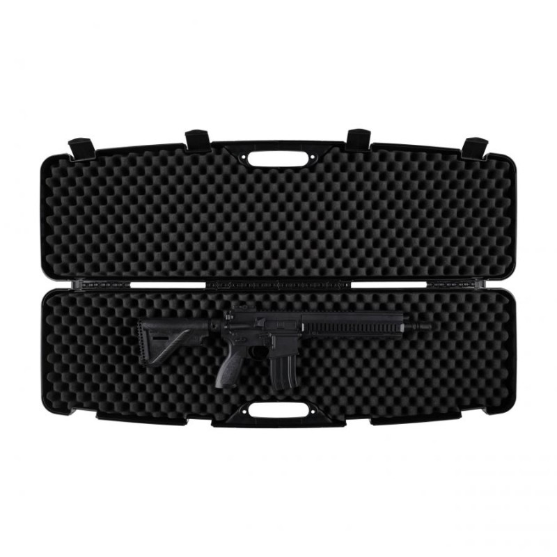 Wytrzymałe zawiasy i ścianki o grubości 3 mm zapewniają bezpieczny transport broni oraz trwałość walizki. Walizka w okolicach uchwytu transportowego posiada otwory umożliwiające zamocowanie kłódki, która będzie chroniła przenoszoną zawartość przed dostępem przez osoby do tego nieuprawnione.