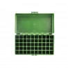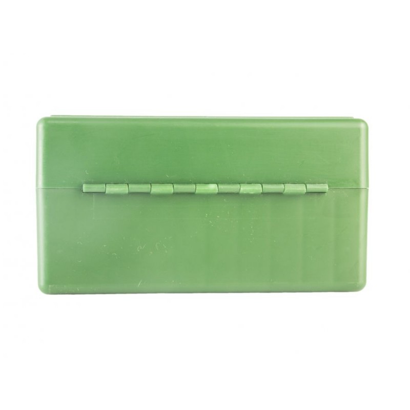 Pudełko na 50 szt naboi karabinowych/sztucerowych kalibru .243- 308Win. Wykonane z twardego tworzywa sztucznego w kolorze zielonym. Niezbędne przy wypadzie na strzelnicę.Zapewnia lepszą ochronę amunicji niż standardowe papierowe opakowania producenta.