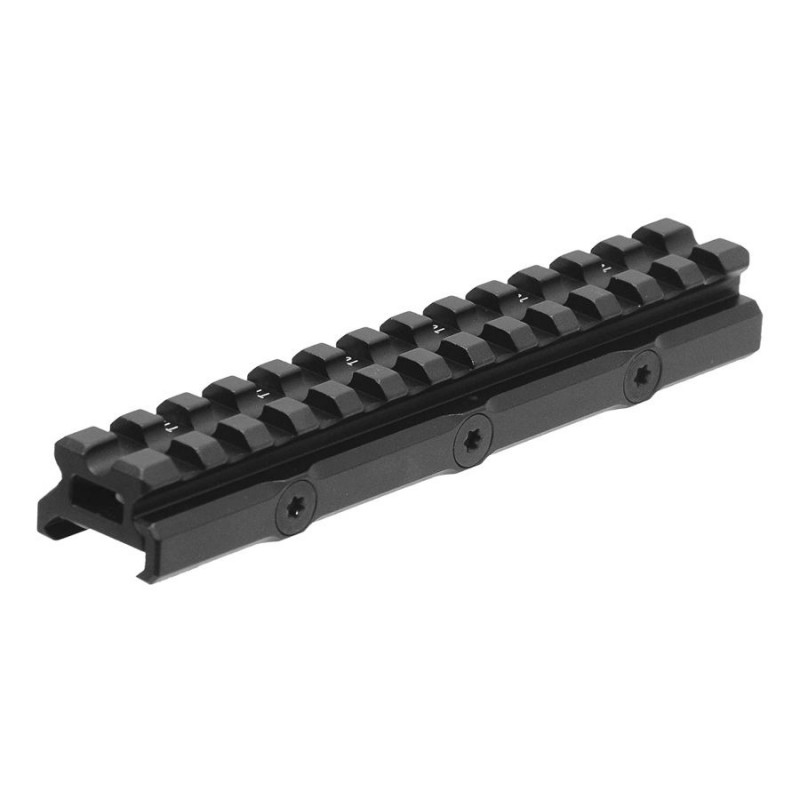 Podwyższenie Leapers to szyna podwyższająca o 13 gniazdach z mikroskosem 20 MOA, przeznaczona do montażu przyrządów optoelektronicznych na karabinach z rodziny AR15.
