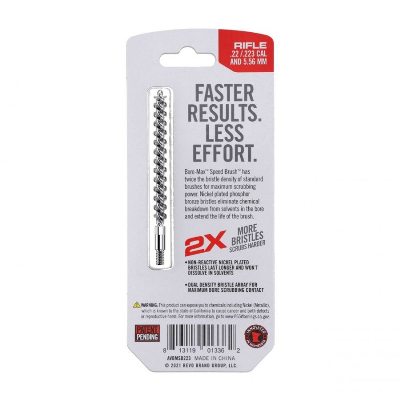 Szczotka do czyszczenia broni Bore-Max z systemem Speed Brush ma dwukrotnie większą gęstością włosia w porównaniu ze zwykłymi mosiężnymi szczotkami, dzięki czemu w trakcie czyszczenia jest większa powierzchnia styku włosia ze ściankami lufy i bruzdami.