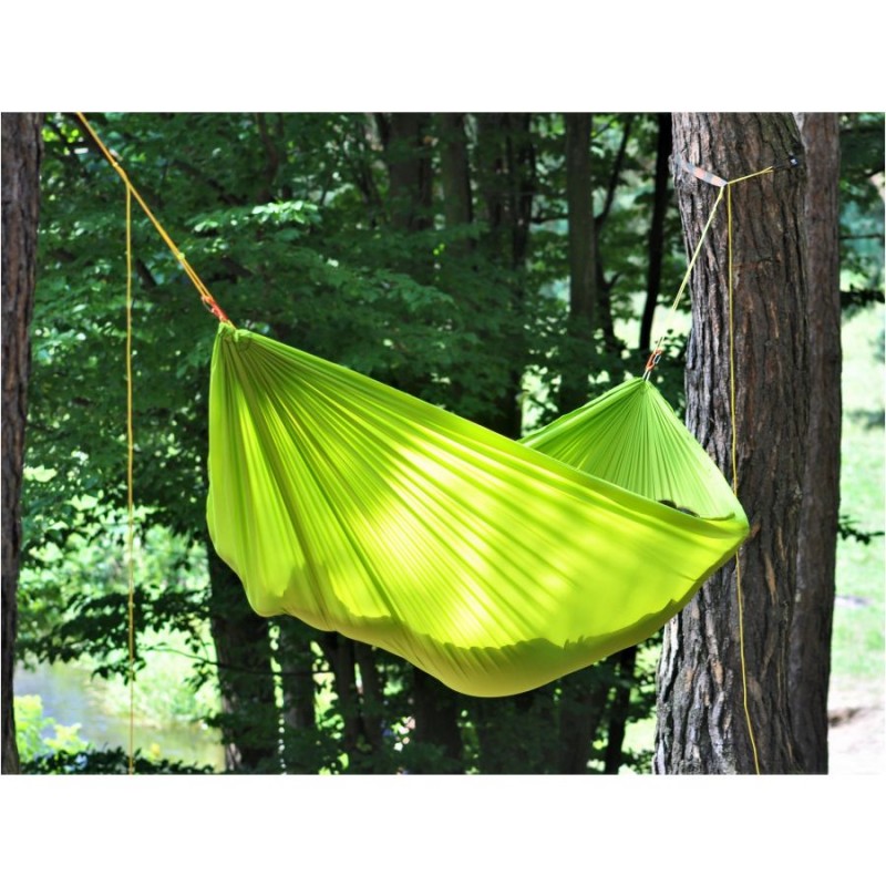 Flyhamak Green to idealne rozwianie dla osób szukających uniwersalnego hamaka do biwakowania pod gołym niebem.