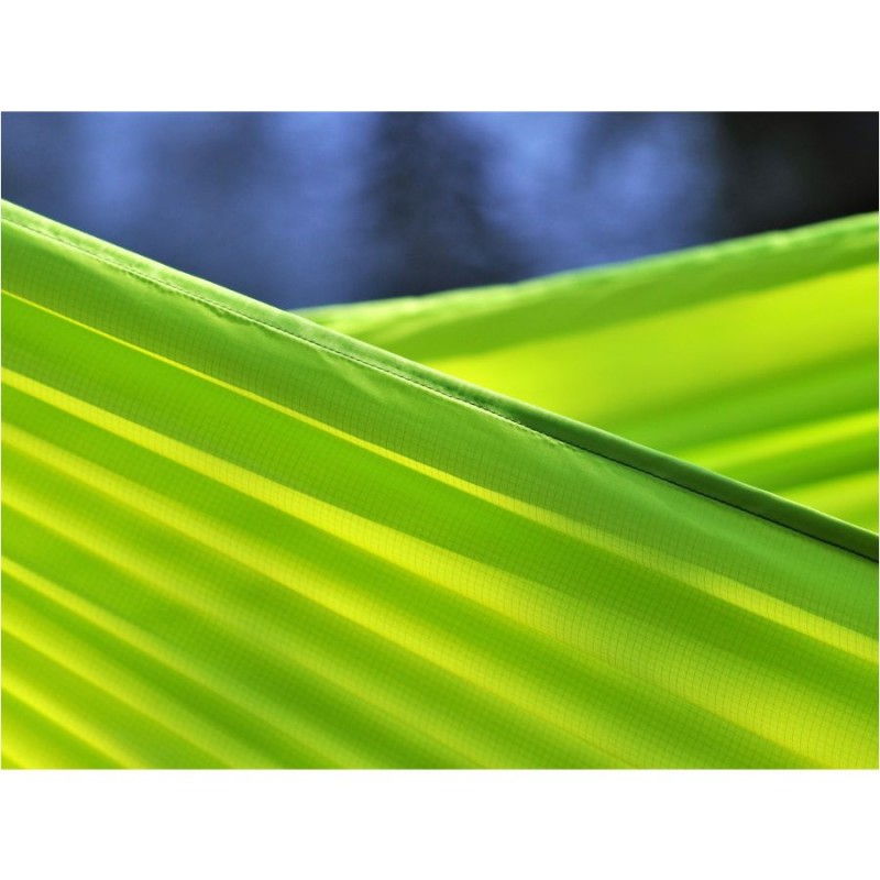 Flyhamak Green to hamak, który pozwoli Ci w łatwy i szybki sposób stworzyć miejsce wypoczynku podczas krótkiego wypadu w teren. Hamak wykonano z lekkiego nylonu tkanego techniką ripstop (na siatce), dzięki czemu tkanina jest niezwykle odporna na roztarganie oraz warunki atmosferyczne.