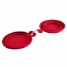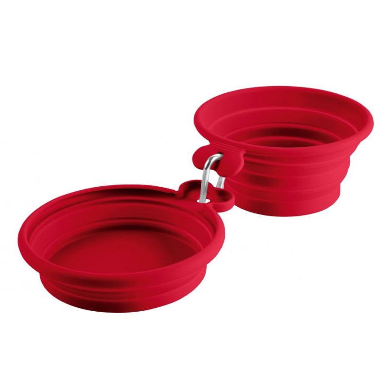 W komplecie znajdują się dwie miski: duża o pojemności 750 ml na karmę oraz mniejsza, o pojemności 350 ml na wodę. Harmonijkowa konstrukcja naczyń powoduje, że miski po złożeniu i schowaniu jedna w drugą zajmują niewiele miejsca, dzięki czemu są wygodne w transporcie.