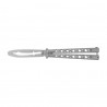 Nóż wykonano ze stali nierdzewnej, co zapewnia odpowiedni ciężar i wyważenie. Klinga pozbawiona jest krawędzi tnącej, ma także łagodnie zakończony sztych, dlatego nóż może być wykorzystywany nie tylko do nauki trików, ale także do treningu samoobrony i nauki walki nożem. Za blokowanie noża w pozycji otwartej i zamkniętej odpowiada prosta blokada typu T-Latch. Rękojeść wykonano z wytrzymałej stali nierdzewnej, w której wycięto otwory, dzięki czemu zredukowano masę noża, a tym samym zwiększono komfort użytkowania oraz treningu Balisongiem.