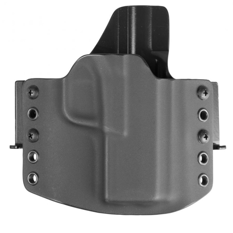 Omawiany model charakteryzuje się konstrukcją typu OWB (Over Waist Band) przeznaczoną do noszenia na zewnętrznej stronie pasa. Kabura tego typu gwarantuje wysoki komfort przenoszenia oraz możliwość szybkiego dobycia. W przypadku chęci wykorzystania w roli kabury EDC konstrukcja skutecznie dociska broń do naszego ciała, pozwalając na dyskretne przenoszenie jej pod obszerną koszulą, marynarką lub kurtką. Kabura OWB doskonale sprawdzi się również w taktycznych lub sportowych konfiguracjach pasa strzeleckiego - skorzystamy z niej zatem zarówno na strzelnicy, jak i w codziennym użytkowaniu. Zwielokrotnione porty montażu szlufek pozwolą nam na ustalenie pionowej pozycji kabury.