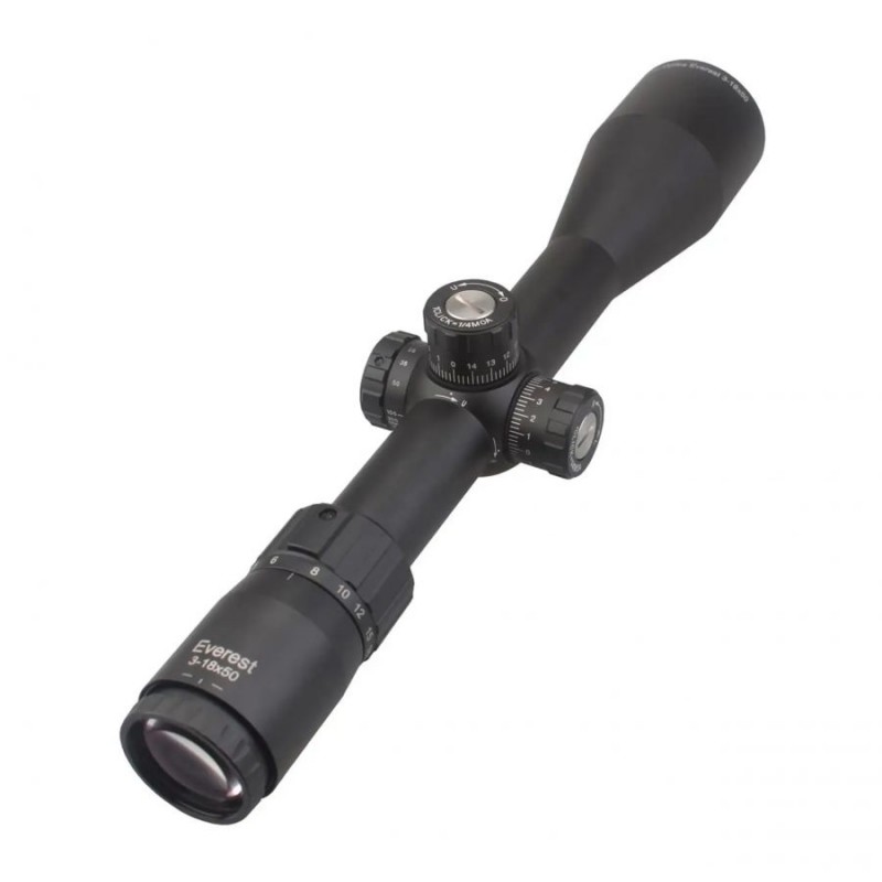 Luneta celownicza Vector Optics Everest 3-18x50 SFP Gen. II SCOL-06II o zmiennym powiększeniu wykorzystuje krzyż celowniczy MPTR-2 umieszczony w drugim planie (SFP).