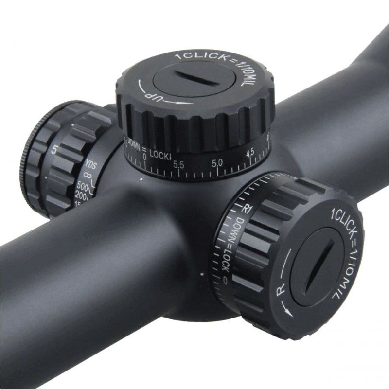 Regulacji ustawień lunety dokonuje się poprzez obrót wieżyczek z widoczną podziałką, dzięki którym użytkownik może szybko skorygować ustawienia, uwzględniając dystans do celu oraz panujące warunki atmosferyczne. Vector Optics Tourus ma możliwość korekcji dioptrii w zakresie -2 do +1,5.
