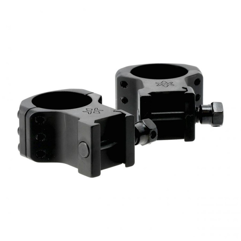 Montaż dwuczęściowy do celownika optycznego o wysokim profilu, wyprodukowany przez firmę Vector Optics, wykonany z anodowanego aluminium 6061-T6 frezowanego metodą CNC. Charakteryzuje się wysoką wytrzymałością, lekkością i precyzyjnym spasowaniem, co zapewnia stabilną i odporną na odrzut podstawę. Montaż przeznaczony jest do standardowych szyn Picatinny i mocowany za pomocą stalowych śrub z podkładkami sprężynującymi.