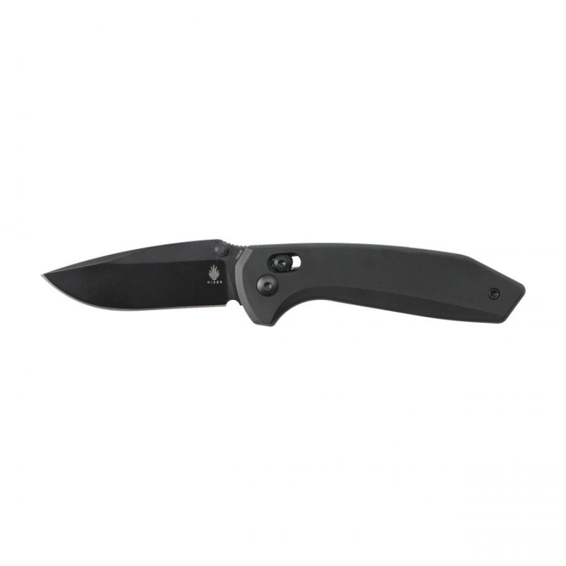 Składany nóż Kizer Sub-3 wyposażono w trwałe okładziny z wysokiej jakości aluminium w kolorze czarnym, dzięki czemu cała konstrukcja jest lekka i poręczna.