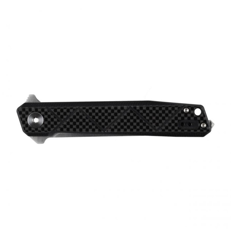 Okladziny dodatkowo pokryto powłoką z włókna węglowego, co subtelnie podkreśla nowoczesny styl noża.