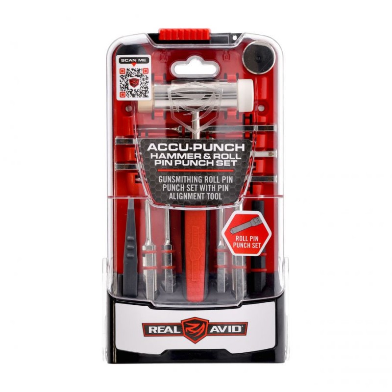 Accu-Punch Hammer™ & Roll Pin Punch Set to zestaw młotka oraz stalowych i mosiężnych wybijaków zaprojektowanych do naprawy i konserwacji broni. Specjalnie dostosowane narzędzia ułatwiają demontaż i składanie broni, jednocześnie chroniąc jej elementy przed uszkodzeniami.