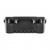 Wzmocniona klapa zamykana jest dwoma solidnymi klamrami zatrzaskowymi, a dodatkowe otwory umożliwiają zabezpieczenie zawartości kłódkami. Wnętrze skrzyni jest otwarte, co pozwala na dowolne układanie i organizowanie przenoszonych przedmiotów. Konstrukcja zewnętrzna umożliwia stabilne układanie skrzyń w stosy, a umieszczone po bokach punkty mocowania ułatwiają zabezpieczenie całości podczas transportu.