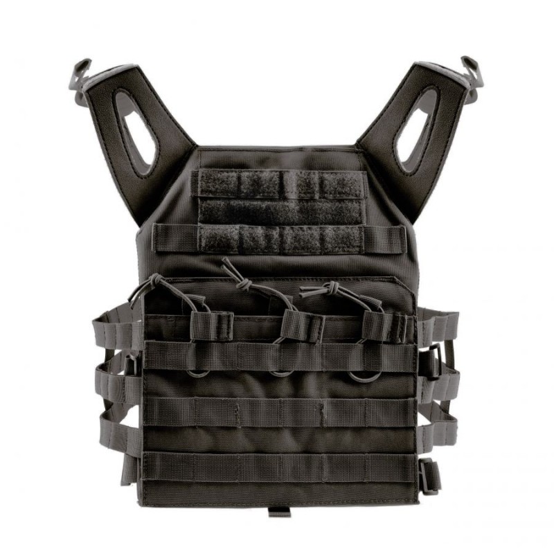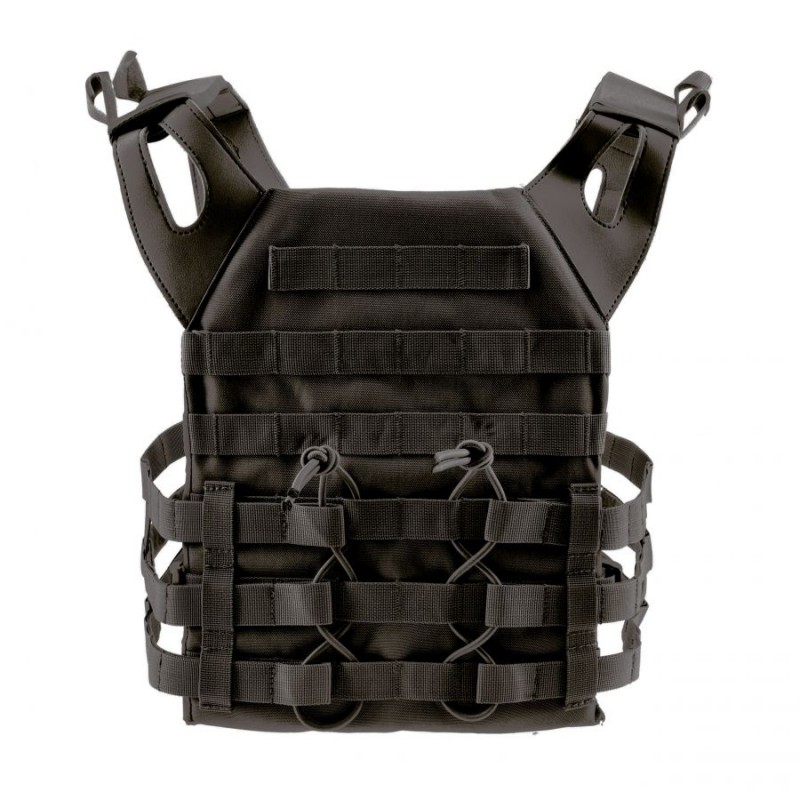 Kamizelka ma dwie kieszenie na wkłady balistyczne w rozmiarze medium. Dwie atrapy takich wkładów z grubej pianki są dołączone do zestawu. Na klatce piersiowej znajduje się płaska kieszeń z naszytymi taśmami rzepowymi, idealnymi do mocowania naszywek i oznaczeń. Kamizelka jest w pełni regulowana, co umożliwia dopasowanie jej do różnych sylwetek i preferencji użytkownika.