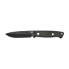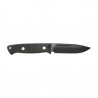 W nożu ze stałą głownią Bushcrafter zastosowano wytrzymałe i ergonomiczne okładziny rękojeści wykonane z czarnego włókna węglowego, które cechuje się dużą trwałością oraz odpornością na wilgoć.