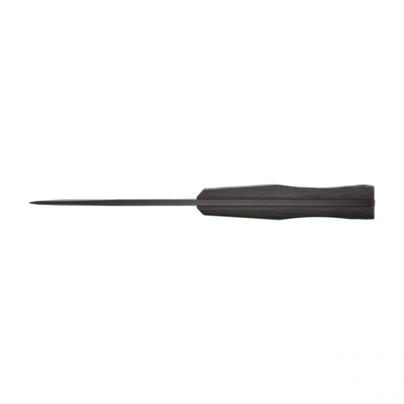 Nóż pewnie leży w dłoni i przystosowany jest do komfortowej, długotrwałej pracy. Dodatkowo jelec chroni użytkownika przed przypadkowym ześlizgnięciem się dłoni na krawędź tnącą ostrza.