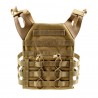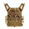 Kamizelka ma dwie kieszenie na wkłady balistyczne w rozmiarze medium. Dwie atrapy takich wkładów z grubej pianki są dołączone do zestawu. Na klatce piersiowej znajduje się płaska kieszeń z naszytymi taśmami rzepowymi, idealnymi do mocowania naszywek i oznaczeń. Kamizelka jest w pełni regulowana, co umożliwia dopasowanie jej do różnych sylwetek i preferencji użytkownika.