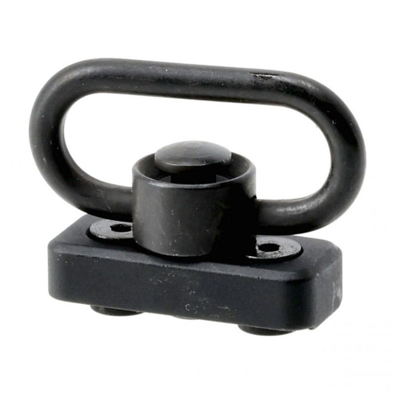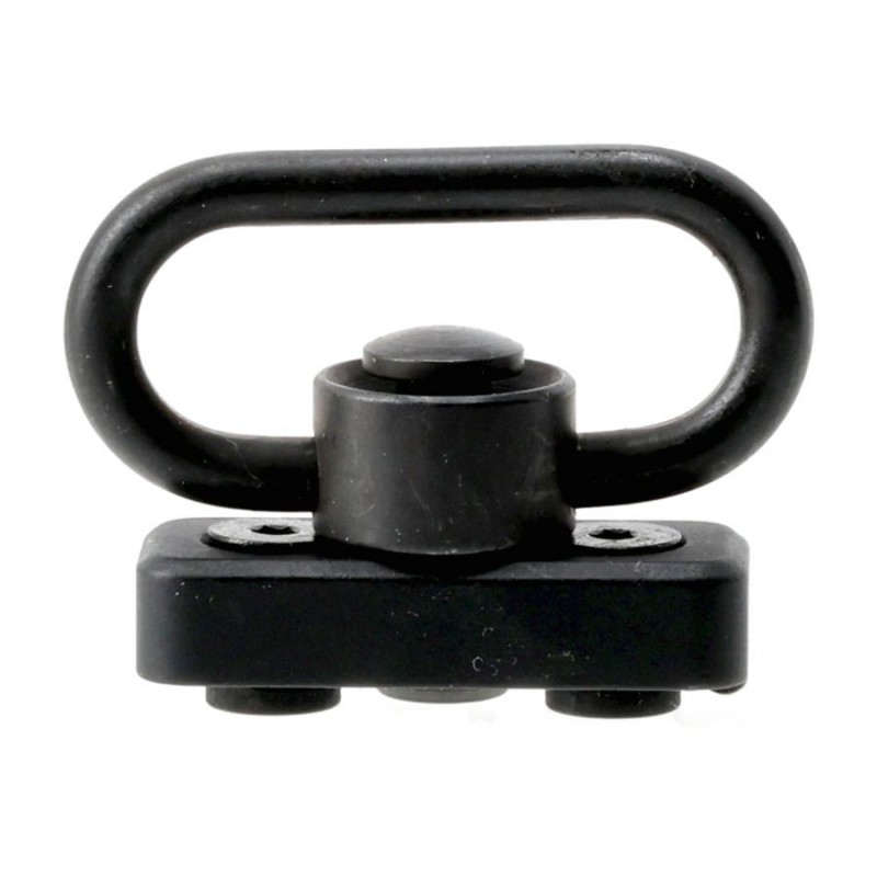 Montaż do zawieszenia taktycznego firmy Vector Optics w systemie Quick Detach z podstawą w systemie KeyMod. Przycisk, trzpień oraz ucho wykonano ze stali, a podstawę z aluminium 6061. Przeznaczony do pasków o szerokości do 36 mm.