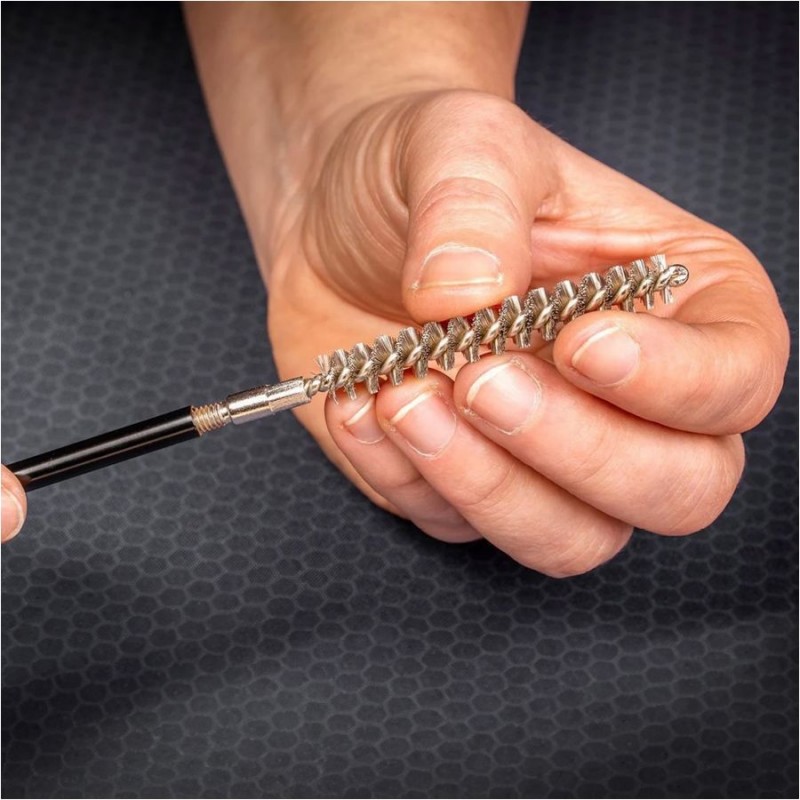 System Bore-Max Speed Clean wyróżnia się dwukrotnie większą gęstością włosia w porównaniu do standardowych szczotek mosiężnych, co zapewnia większą powierzchnię kontaktu ze ściankami lufy i bruzdami.