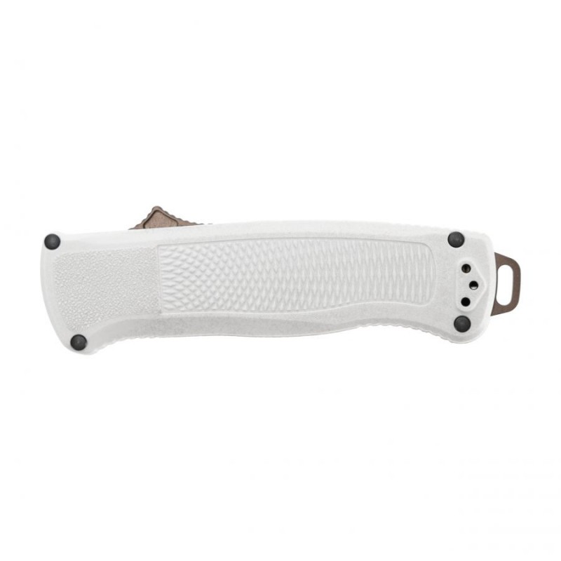 Benchmade 5370FE Shootout to lekki nóż automatyczny o podwójnym działaniu, w którym zastosowano głownię tanto ze ultra twardej stali CPM-CruWear, rękojeść z tworzywa CF-Elite oraz zbijak z węglika wolframu umożliwiający błyskawiczne rozbicie szyby. Lekka i poręczna konstrukcja oraz materiały klasy premium sprawiają, że jest to idealny nóż dla służb mundurowych oraz wymagających użytkowników szukających niezawodnego narzędzia.