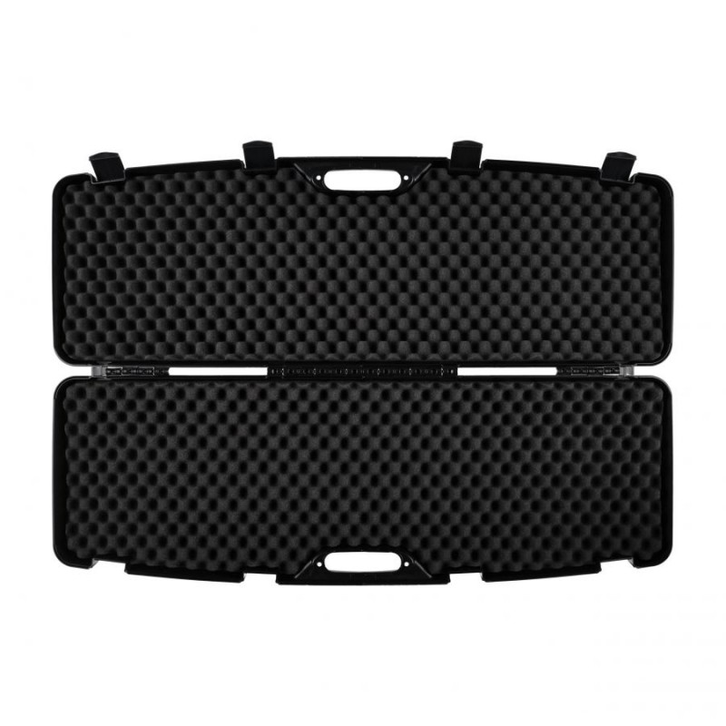 Kufer na broń Megaline o wymiarach 118x35x11 cm to duża walizka przeznaczona do transportu broni, z wnętrzem wyściełanym pianką oraz systemem zamykania za pomocą 4 solidnych klamer.