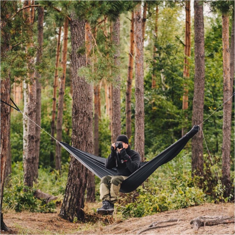 Duże wymiary hamaka (300×150 cm) gwarantują maksymalną wygodę wypoczynku osobom o wzroście nawet sięgającym do 200 cm. Dzięki bardzo małej wadze sięgającej 330g oraz małym gabarytom, hamak jesteśmy w stanie zabrać praktycznie na każdą wyprawę. Hamak po złożeniu do pokrowca pochłonie jedynie litr zawartości Twojego plecaka czy też torby, co daje bardzo dobry rezultat.
