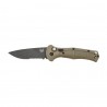 Benchmade 9070SBK-1 Claymor ma profilowane okładziny z tworzywa Grivory w kolorze ranger green. Zastosowany laminat szklano-epoksydowy cechuje się niewielką masą, wysoką wytrzymałością mechaniczną, odpornością na wodę, zmianę temperatur, a także działanie wielu kwasów i rozpuszczalników.