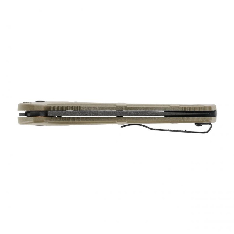 Rękojeść, która wyróżnia się nowoczesnym taktycznym designem, przede wszystkim zapewnia stabilny, wygodny i niezawodny chwyt. Rękojeść w centralnej części i u nasady noża jest szersza, a na jej powierzchni naniesiono moletowane wstawki, dzięki którym nóż praktycznie nie ma możliwości wyślizgnięcia się z dłoni. Aby zwiększyć niezawodność i wytrzymałość konstrukcji, w nożu zastosowano pełne stalowe linersy. Dyskretne przenoszenie noża w kieszeni umożliwia wysoko osadzony klips z możliwością mocowania po dwóch stronach okładzin.