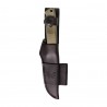 Bushcrafter przed przypadkowym zgubieniem zabezpieczony jest pętlą z napą, która zapewnia również stabilne osadzenie noża w pochewce. Z boku pochewki umiejscowiono uchwyt mocujący do przenoszenia krzesiwa survivalowego, które ułatwi nam rozpalenie ognia w terenie.