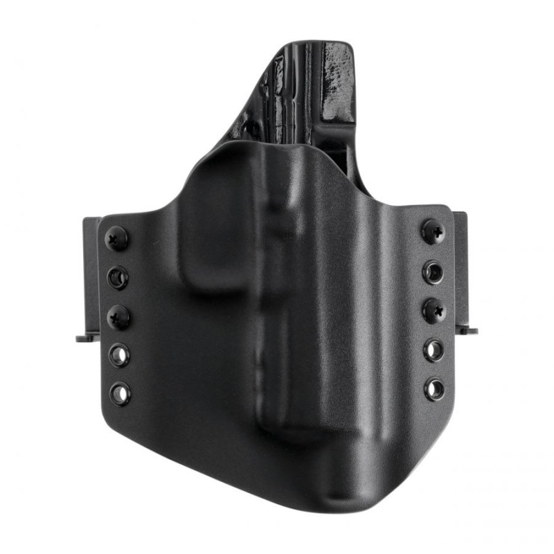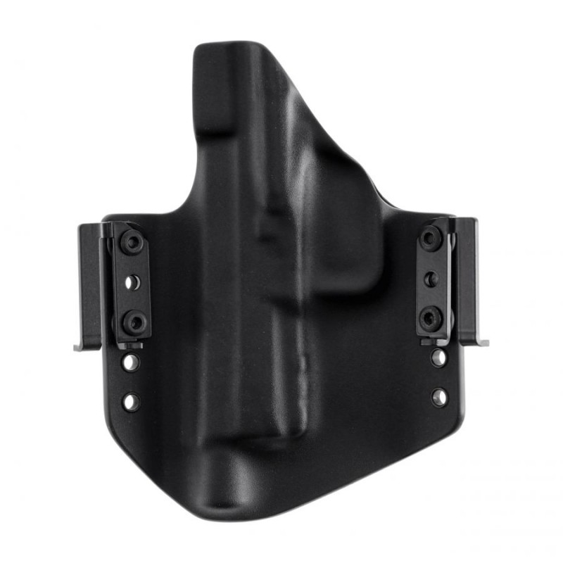 Omawiany model charakteryzuje się konstrukcją typu OWB (Over Waist Band) przeznaczoną do noszenia na zewnętrznej stronie pasa. Kabura tego typu gwarantuje wysoki komfort przenoszenia oraz możliwość szybkiego dobycia. W przypadku chęci wykorzystania w roli kabury EDC konstrukcja skutecznie dociska broń do naszego ciała, pozwalając na dyskretne przenoszenie jej pod obszerną koszulą, marynarką lub kurtką. Kabura OWB doskonale sprawdzi się również w taktycznych lub sportowych konfiguracjach pasa strzeleckiego - skorzystamy z niej zatem zarówno na strzelnicy, jak i w codziennym użytkowaniu. Zwielokrotnione porty montażu szlufek pozwolą nam na ustalenie pionowej pozycji kabury.