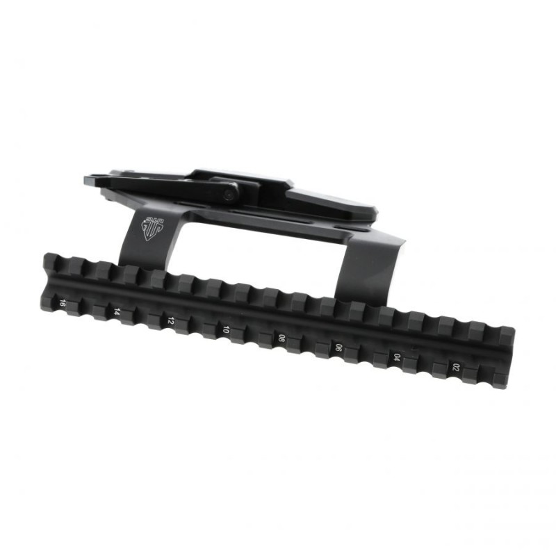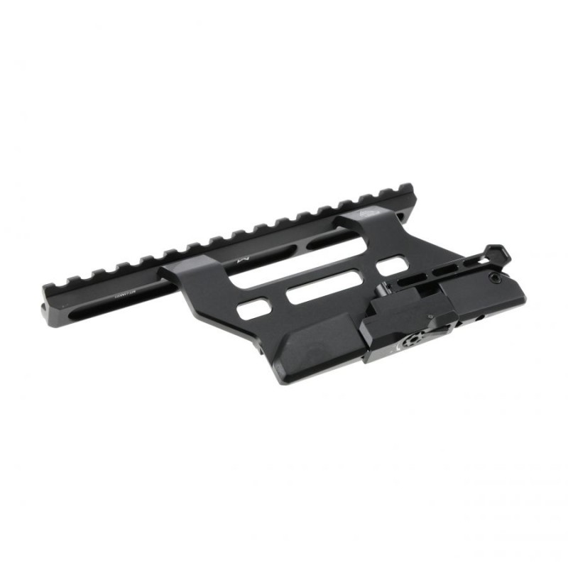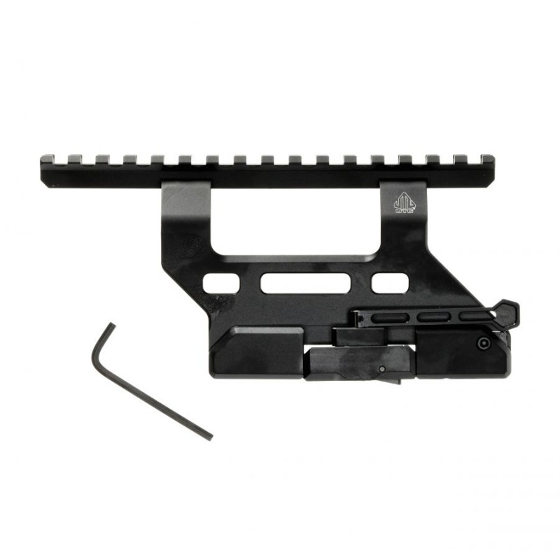 Boczny montaż ACCU-SYNC® Leapers UTG QR AK do karabinów z rodziny AK z górną szyną montażową Picatinny MIL-STD-1913 oraz dwoma bocznymi gniazdami M-LOK®, oferuje możliwość zamocowania dodatkowych akcesoriów strzeleckich.