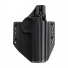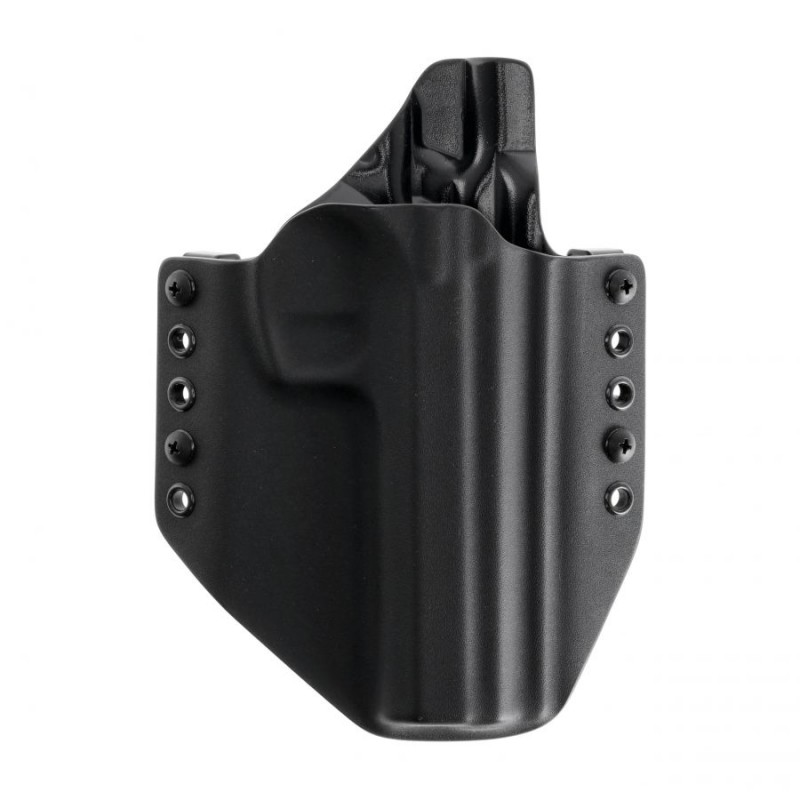 Omawiany model charakteryzuje się konstrukcją typu OWB (Over Waist Band) przeznaczoną do noszenia na zewnętrznej stronie pasa. Kabura tego typu gwarantuje wysoki komfort przenoszenia oraz możliwość szybkiego dobycia. W przypadku chęci wykorzystania w roli kabury EDC konstrukcja skutecznie dociska broń do naszego ciała, pozwalając na dyskretne przenoszenie jej pod obszerną koszulą, marynarką lub kurtką. Kabura OWB doskonale sprawdzi się również w taktycznych lub sportowych konfiguracjach pasa strzeleckiego - skorzystamy z niej zatem zarówno na strzelnicy, jak i w codziennym użytkowaniu. Zwielokrotnione porty montażu szlufek pozwolą nam na ustalenie pionowej pozycji kabury.