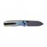 Klingę osadzono na ceramicznych łożyskach kulkowych, dzięki czemu nóż otwiera się płynnie i zapewnia wysoką kulturę pracy. Głownię o uniwersalnym profilu Drop Point wykończoną tradycyjną techniką satynowania.