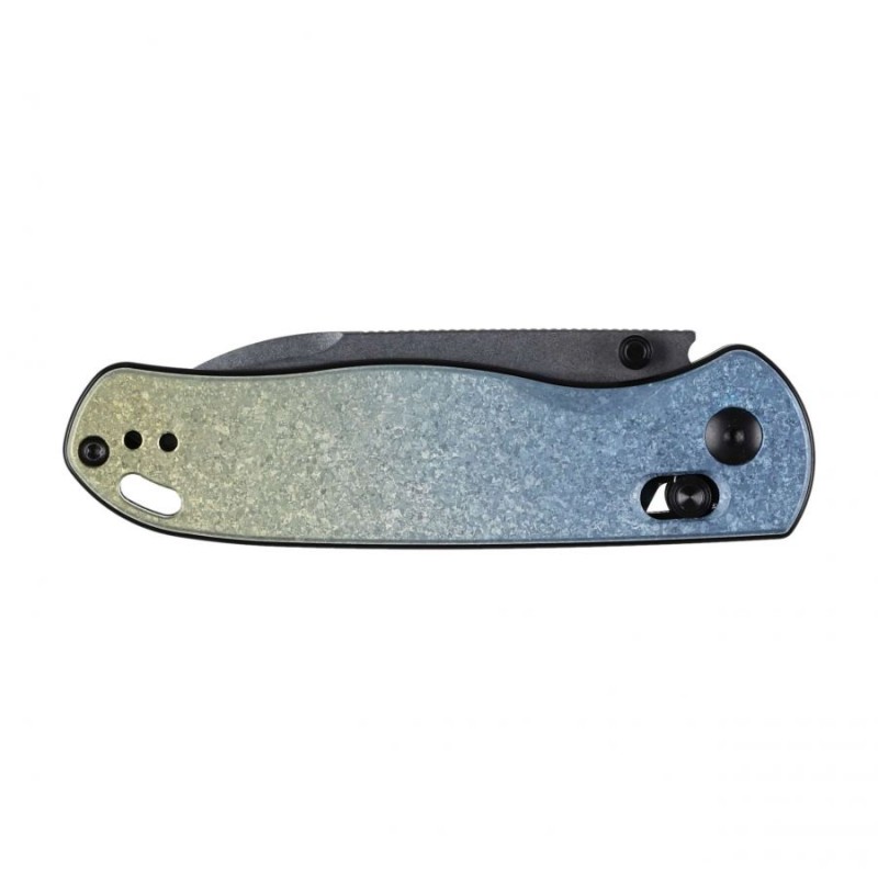 Okładziny mają gładkie krawędzie, zapewniając komfortowy chwyt nawet podczas dłuższej pracy. A dolne wyprofilowanie pod palec, poprawia bezpieczeństwo użytkownika i zmniejsza ryzyko ześlizgnięcia się dłoni na krawędź tnącą ostrza. Składany nóż został wyposażony w klips typu Deep Carry, dzięki któremu nóż można dyskretnie przenosić w kieszeni spodni. W tylnej części rękojeści umieszczono obszerny otwór na linkę paracord lub brelok.