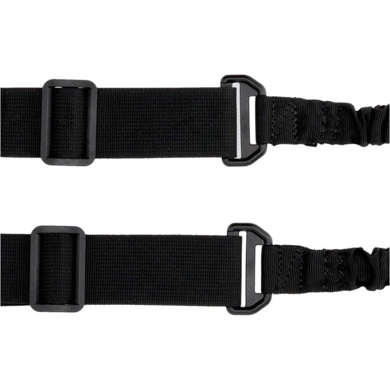 Taktyczne zawieszenie 2-punktowe typu bungee zostało wykonane z poliestru charakteryzującego się odpornością na przetarcia oraz odpornością na uszkodzenia mechaniczne.