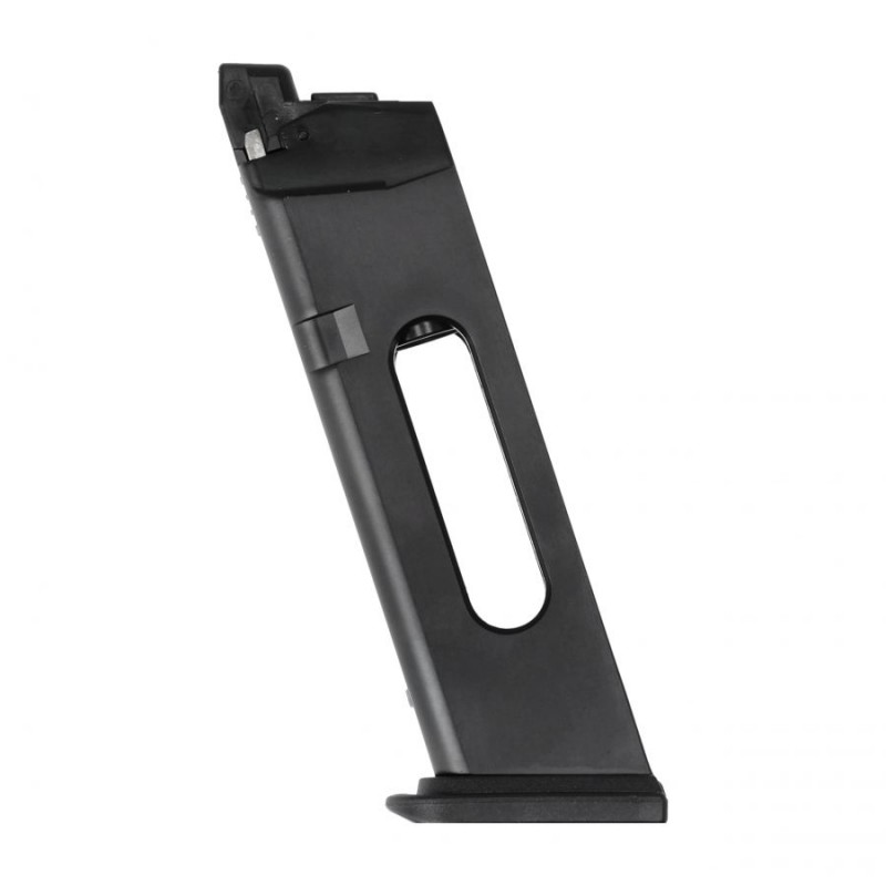 Korpus magazynka wykonano z metalu, stopka jest polimerowa. Wewnątrz magazynka znajduje się przedział na kapsułę CO2. Magazynek mieści 17 śrucin BB.