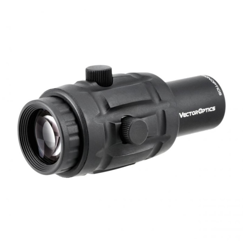 Powiększalnik Vector Optics Maverick 3x26 z montażem przeznaczony do celownika kolimatorowego Maverick 3x26. Przystawka powiększająca jest mocowana pomiędzy celownikiem kolimatorowym a okiem strzelca, skutecznie ułatwiając celowanie na dalszych odległościach.