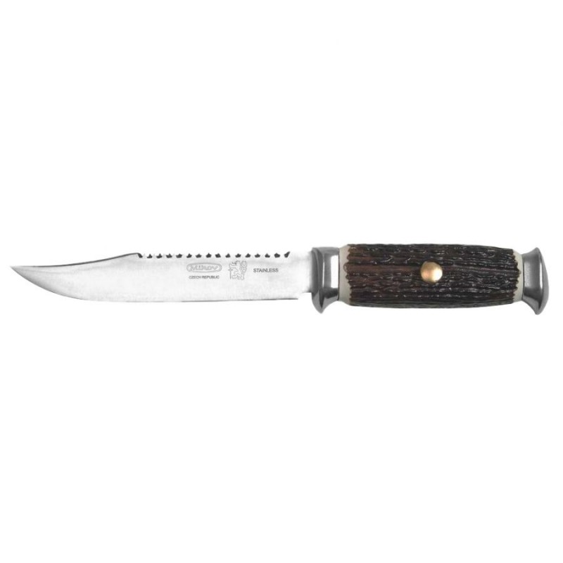 Mikov Venado 376-NH-1 to duży nóż myśliwski w tradycyjnym stylu, z ostrzem full tang ze stali nierdzewnej 420, piłą do cięcia kości oraz efektowną rękojeścią imitującą poroże jelenia.