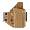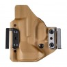 Omawiany model charakteryzuje się konstrukcją typu OWB (Over Waist Band) przeznaczoną do noszenia na zewnętrznej stronie pasa. Kabura tego typu gwarantuje wysoki komfort przenoszenia oraz możliwość szybkiego dobycia. W przypadku chęci wykorzystania w roli kabury EDC konstrukcja skutecznie dociska broń do naszego ciała, pozwalając na dyskretne przenoszenie jej pod obszerną koszulą, marynarką lub kurtką. Kabura OWB doskonale sprawdzi się również w taktycznych lub sportowych konfiguracjach pasa strzeleckiego - skorzystamy z niej zatem zarówno na strzelnicy, jak i w codziennym użytkowaniu. Zwielokrotnione porty montażu szlufek pozwolą nam na ustalenie pionowej pozycji kabury.
