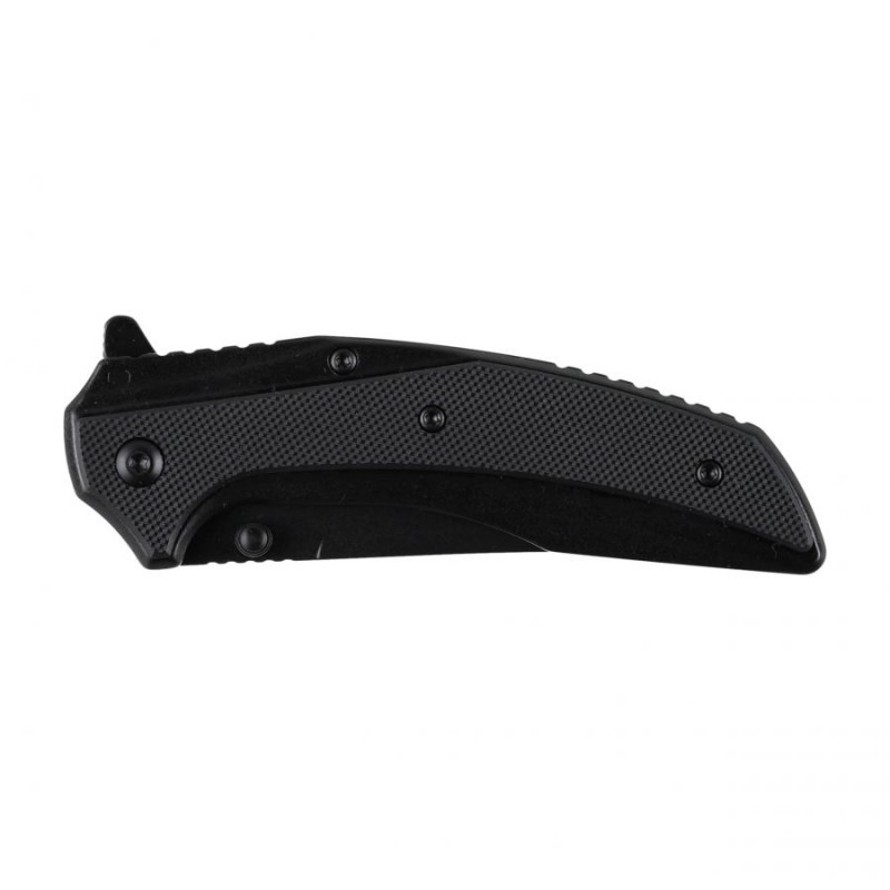 Rękojeść noża tworzą okładziny wykonane w technologii 3D z czarnego kompozytu G10. Zastosowany laminat szklano-epoksydowy cechuje się niewielką masą, wysoką wytrzymałością mechaniczną, odpornością na wodę, zmianę temperatur, a także działanie wielu kwasów i rozpuszczalników. Profilowany kształt chwytu, podcięcie na palce oraz drobne antypoślizgowe kratkowanie powodują, że ten niewielki nóż bardzo pewnie leży w dłoni i jest wygodny w codziennym użytkowaniu. Dyskretne przenoszenie noża w kieszeni umożliwia wysoko osadzony klips bez możliwości przełożenia.