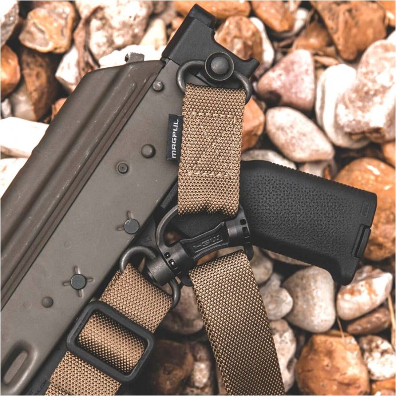 Jednopunktowe zawieszenie Magpul MS4 Dual QD Sling GEN2, bazujące na sprawdzonym systemie MS1 z szybką regulacją długości, zostało wyposażone w adapter z zaczepem QD.