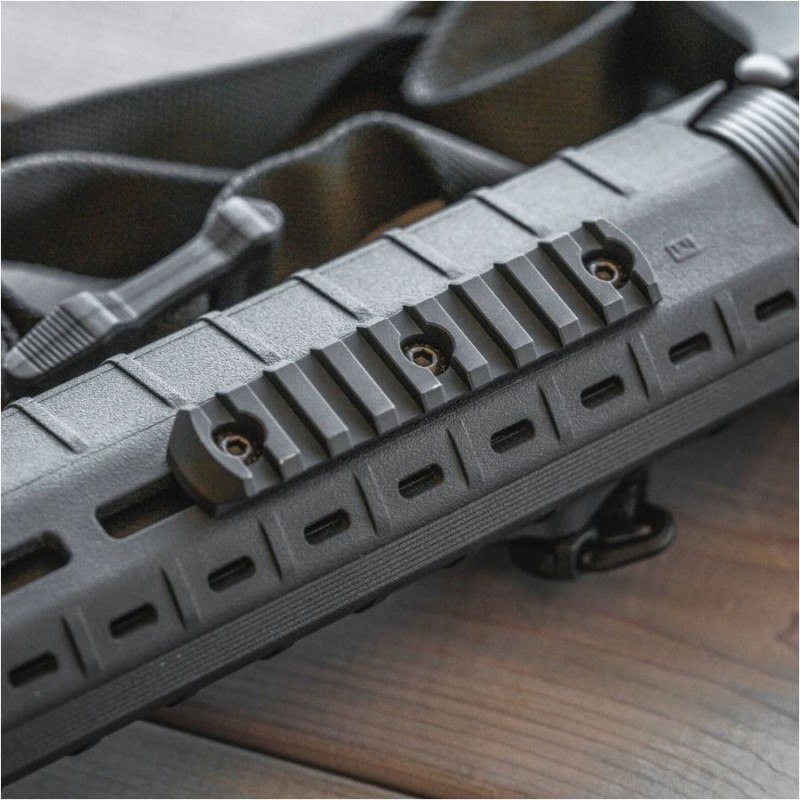 Szyna aluminiowa Picatinny Magpul M-LOK MAG583 dedykowana do systemów montażu Picatinny / RIS umożliwia wygodne mocowanie akcesoriów taktycznych jak np. latarka lub chwyt przedni.