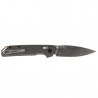 Wykonana z ciemnoszarego aluminium rękojeść nadaje narzędziu chłodnej elegancji. Zapewnia też wygodny chwyt. Wieńczy ją otwór na brelok lub smycz.
