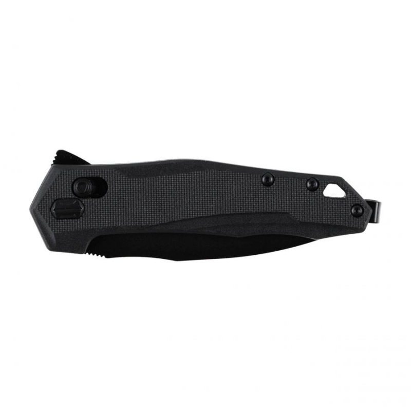 Długa na 76 milimetrów, czarna klinga o profilu Drop Point, dzięki wyraźnej krzywiźnie brzucha ostrza i grzbiecie łagodnie opadającym ku czubkowi, posiada wytrzymały sztych i dobre właściwości tnące. Czyni to z Kershaw Monitor nóż uniwersalny, przeznaczony do prostych prac w domu, ogrodzie lub za miastem.