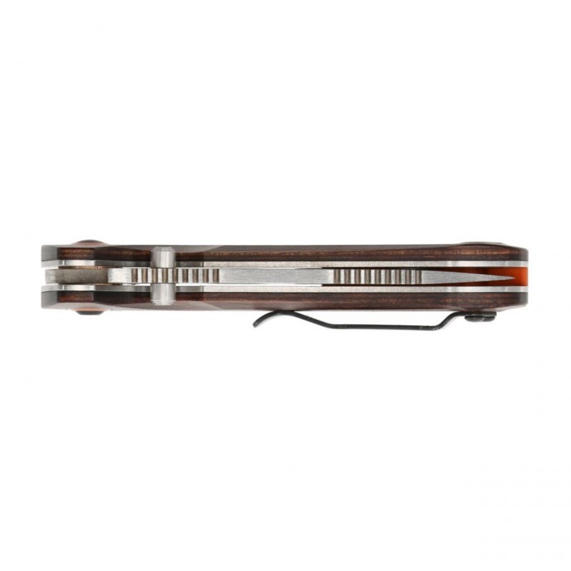 Wygodna rękojeść z anatomicznie profilowanymi okładzinami wykonanymi z klasycznego drewna zapewni wygodę podczas długiej pracy nożem, a odpowiednie profilowanie poprawi pewność chwytu. Konstrukcja zapewnia łatwe utrzymanie noża w czystości.